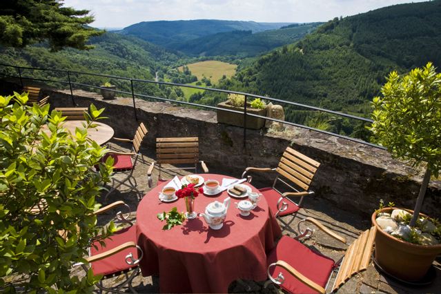 Beim Frühstück zu zweit genießen Sie einen herrlichen Ausblick in das Alfbach-Tal