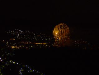 Blick von der Burg auf das Feuerwerk in Bullay